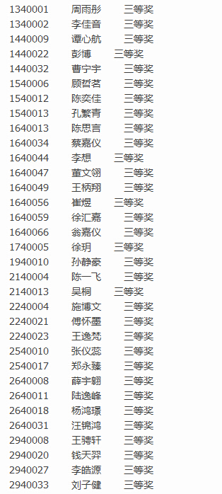 2016上海第16届中环杯决赛四年级获奖名单(4) 上海奥数网 2016-03-18 10:32:01 编辑推荐: 2016上海第16届中环杯决赛各年级获奖分数线 2016上海第16届中环杯决赛二至五年级获奖名单 2016年上海第十六届中环杯决赛查分网址 首页 上一页 下一页 尾页
