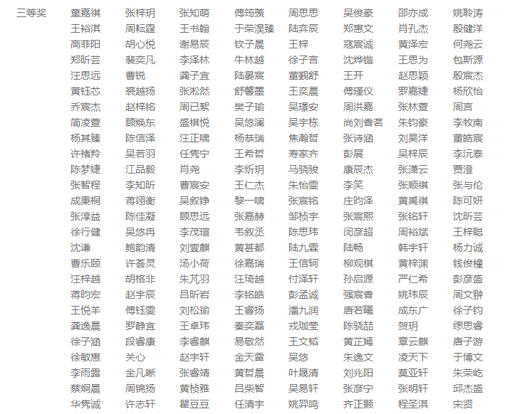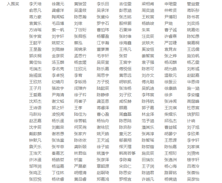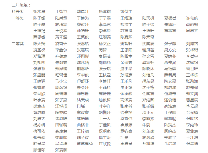 上海第14届小机灵杯二年级决赛全市获奖名单