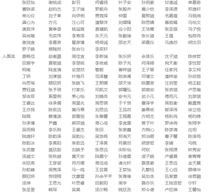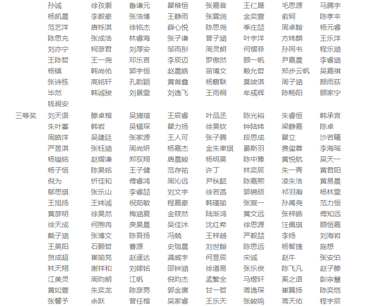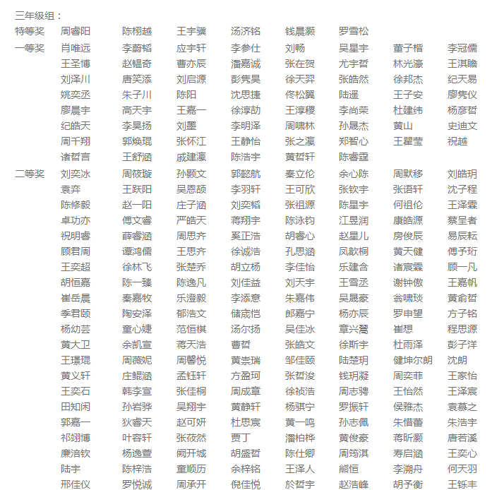 上海第14届小机灵杯三年级决赛全市获奖名单