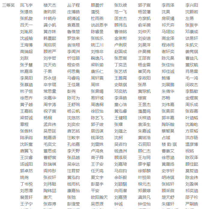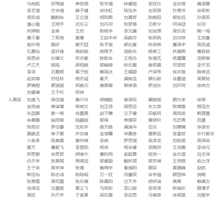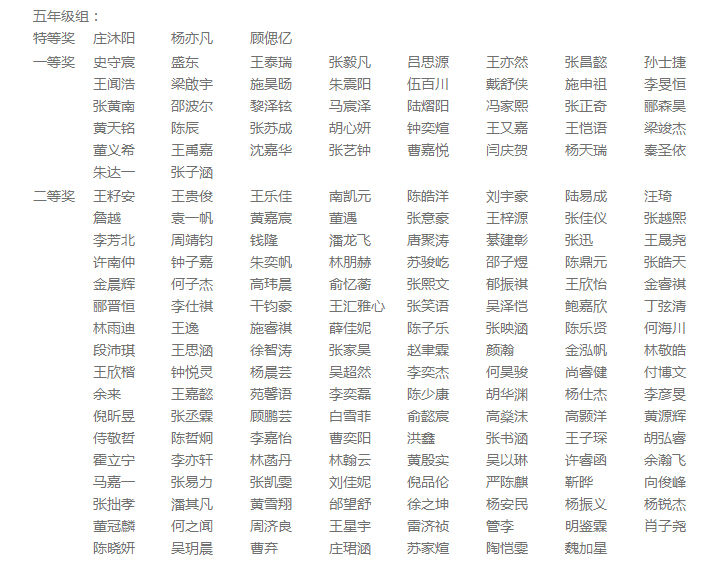 上海第14届小机灵杯五年级决赛全市获奖名单