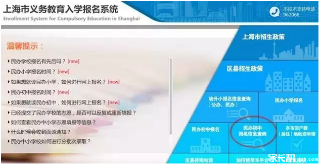 家长可以通过手机短信或登录“上海市义务教育入学报名系统”,进入“民办初中报名信息查询”页面查看民办初中发出的相关通知。