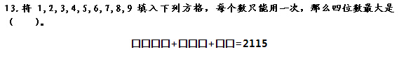 写成竖式比较好观察,根据结果去试着填了一下。填好后再验算了一下,反正这个等式是成立的,不确定四位数填的是不是最大的,哎,已经花了不少时间,先这么填着吧。待会儿再说。