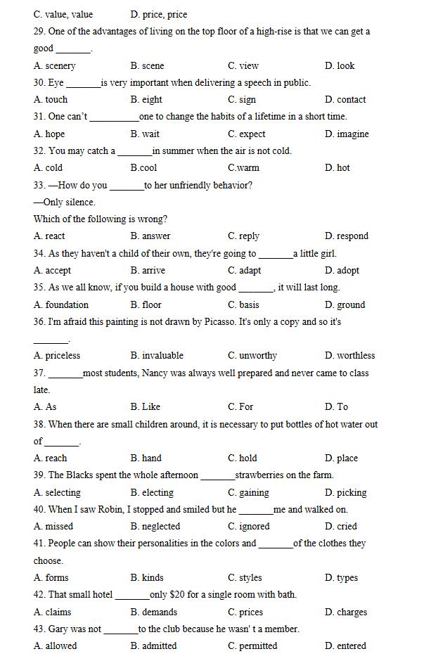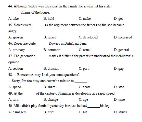 2016上海全能五星备考三年级词汇题及答案(2)