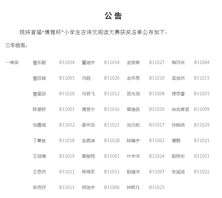 2016年上海第一届博雅杯语文竞赛成绩可以查询了,下面是三年级博雅杯获奖名单,详情如下。