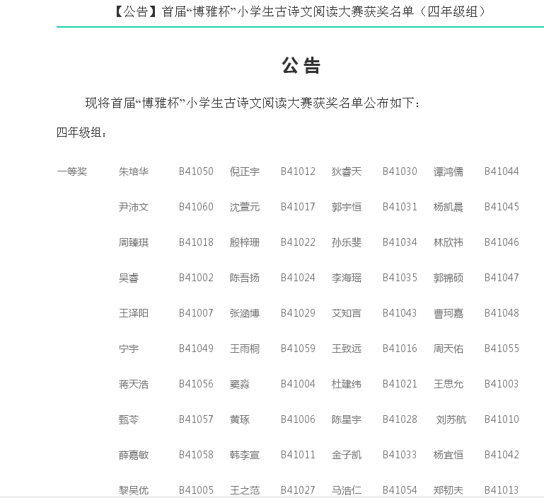 2016年上海第一届博雅杯语文竞赛成绩可以查询了,下面是四年级博雅杯获奖名单,详情如下。