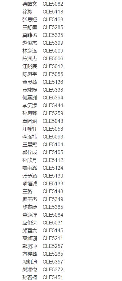 2017上海春蕾杯五年级英语能力决赛入围名单(2)