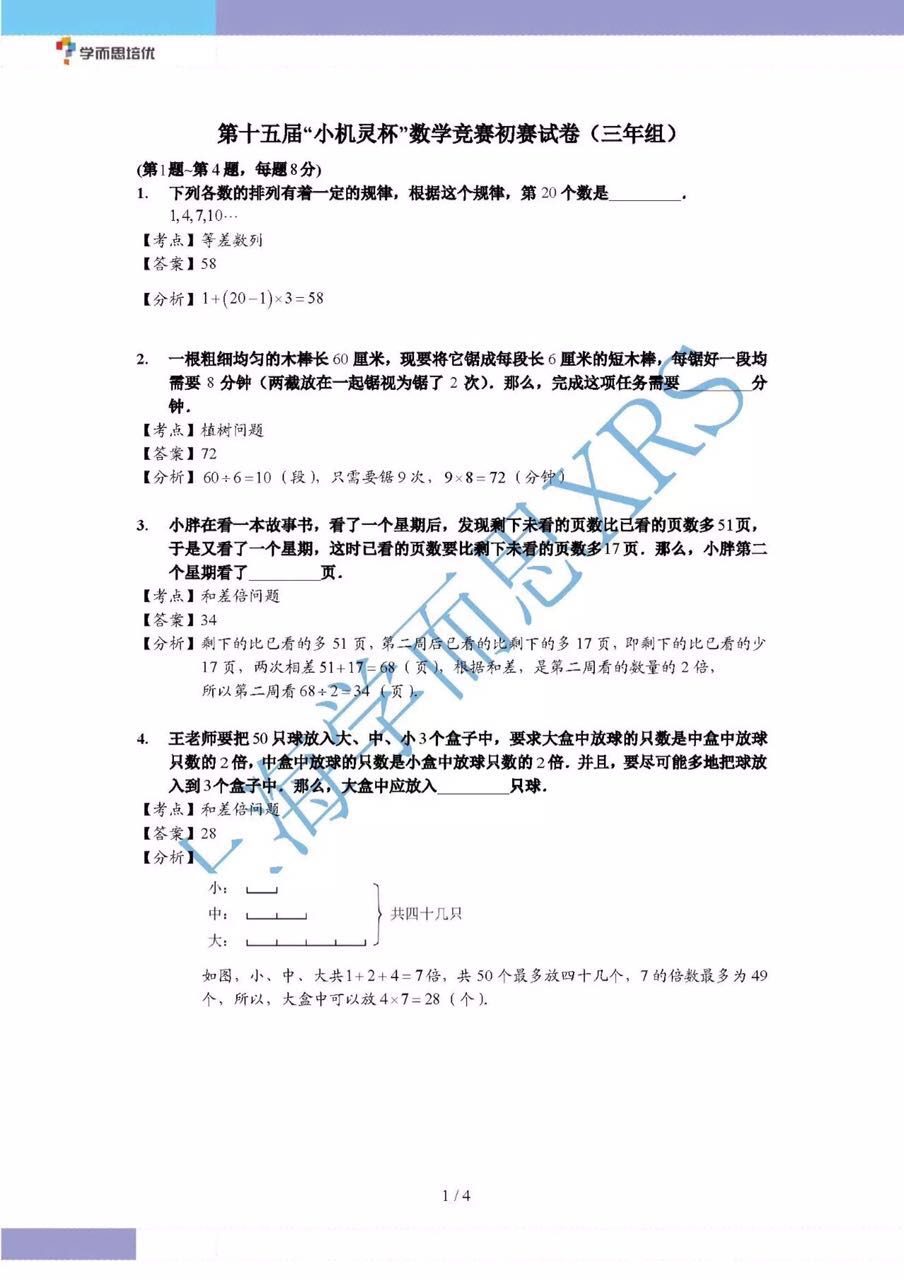 2017上海15届小机灵杯三年级初赛真题解析(2)