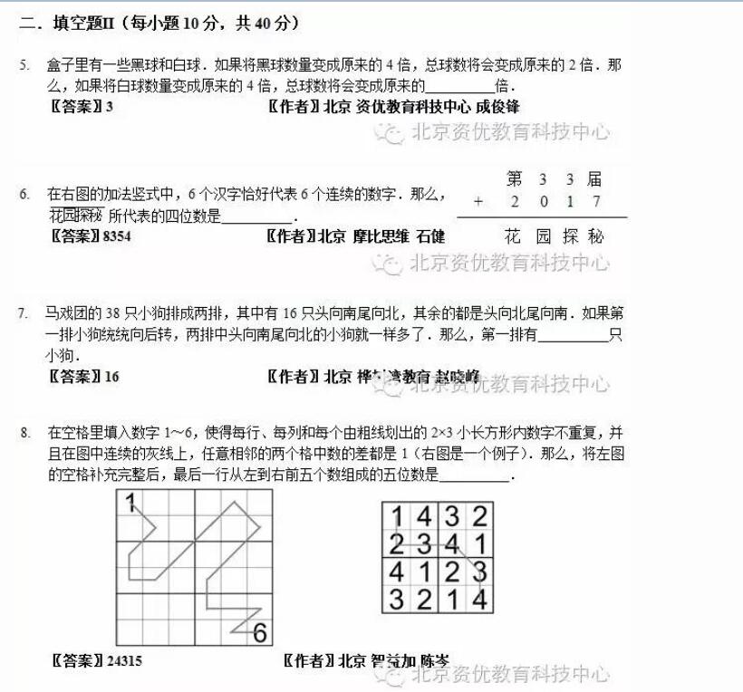 2017年数学花园探秘初赛三年级考题及答案(2)