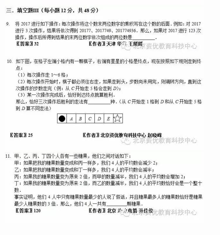 2017年数学花园探秘初赛三年级考题及答案(3) 上海家长帮 2016-12-28 11:12:31 编辑推荐: 2016年数学花园探秘决赛小中组考题及答案 2016年数学花园探秘决赛小高组考题及答案 2017年数学花园探秘初赛三至六年级考题答案 2017上海15届走美杯三套四年级模拟卷答案 首页 上一页 下一页 尾页