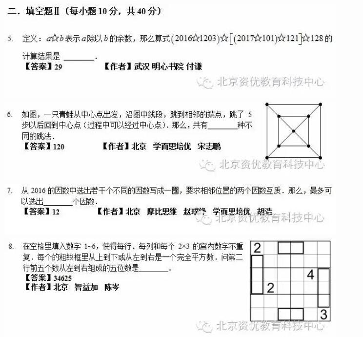 2017年数学花园探秘初赛五年级考题及答案(2)