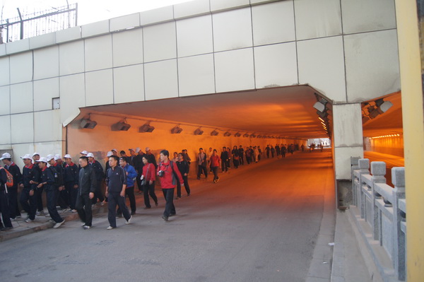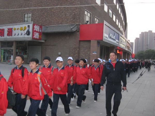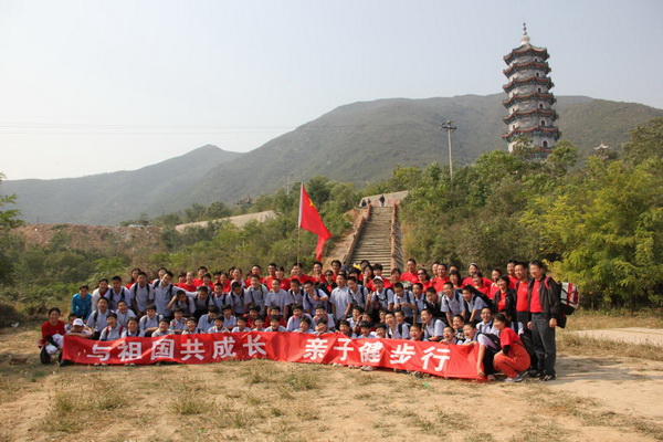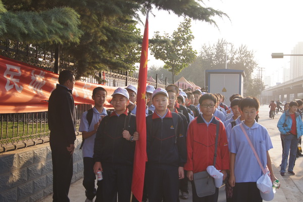 10月3日清晨,顶着一钩残月,迎着习习凉风,1010班的老师、同学和家长130余人排着整齐的队伍,从西贝海鲜会广场出发。队伍先是徐行,继而疾步,间或变速跑,行进速度很快但秩序井然。随着不间断地运动,初秋清晨的寒意已荡然无存,同学们的外套也穿不住了。上午10时,队伍已经走了4个多小时,中间只进行了2次短暂的休整。行百里者半九十,越到最后越困难,最后的3公里显得是那么漫长遥远,有些同学已经有点体力不支了,大家就互相打气鼓劲,咬牙也要坚持住。队伍行进的速度慢下来了,但仍然坚定地向着目的地进发,终于在上午11点左右到达了龙泉寺。站在山顶极目四野,看秋意渐浓,望收获在即,跋涉的疲倦一扫而空,自豪的喜悦油然而生。出发前的忐忑,行进间的汗水,都幻化成此刻战胜自我的欣然,一切困难都只不过是纸老虎。其实,学习的征程,人生的旅途又何尝不是如此呢?