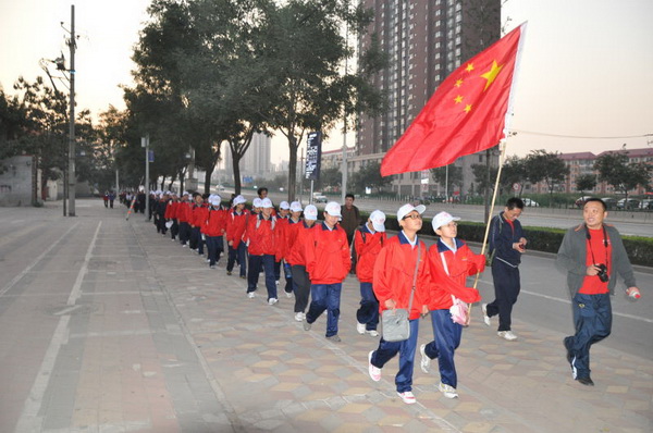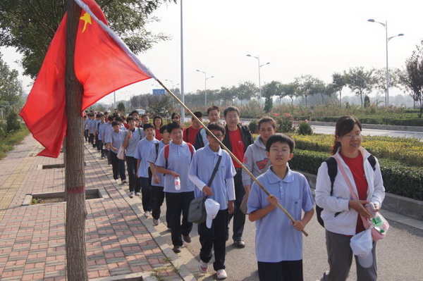 国庆期间,我校1010班举行了一次“与祖国共成长,亲子健步行”活动。59名同学和学生家长在班主任李智勇老师带领下沿省会槐安路步行18公里到达鹿泉市龙泉寺,在庆祝祖国母亲生日的同时,锻炼了体质,磨练了意志。金秋时节正是出游健身的最好时机,班级组织的这次活动磨练了同学们的意志,增强了同学们战胜困难的信心。家长们也一致认为活动非常圆满成功,希望今后多举办类似的活动。
