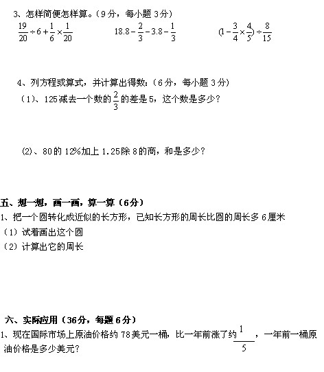 六年级数学上册期中考试试卷六(3)