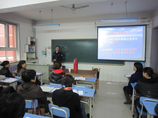 10月31日,市消防大队对我校全体教师进行了一次生动、深刻的消防安全知识讲座。