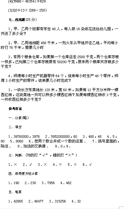 四年级数学下册期中考试试题(五)(2)