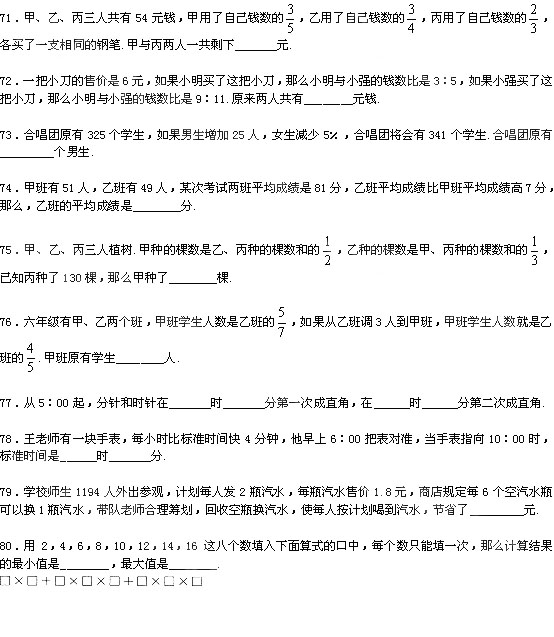 希望杯六年级备考练习习题(八)