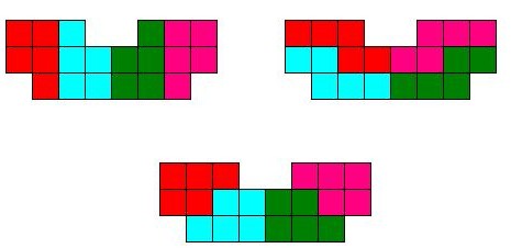 这是一个轴对称图形,所以以中间的轴为切线,把图形分成两部分,每一部分各含完全相同的两块。