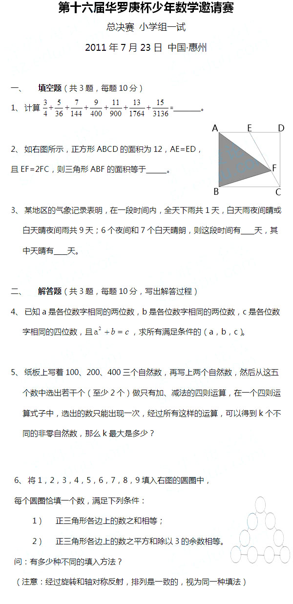第16届小学“华杯赛”总决赛第一试试题及答案