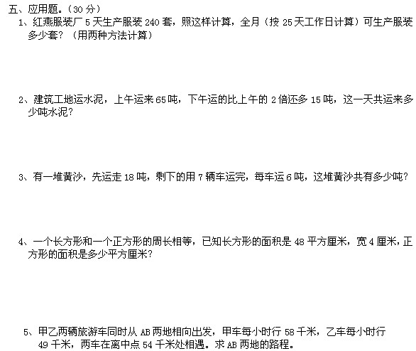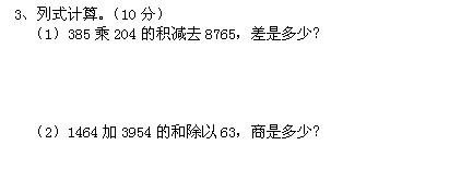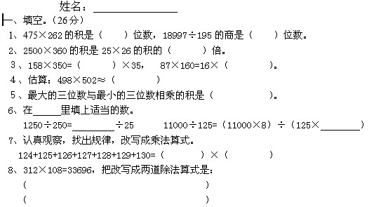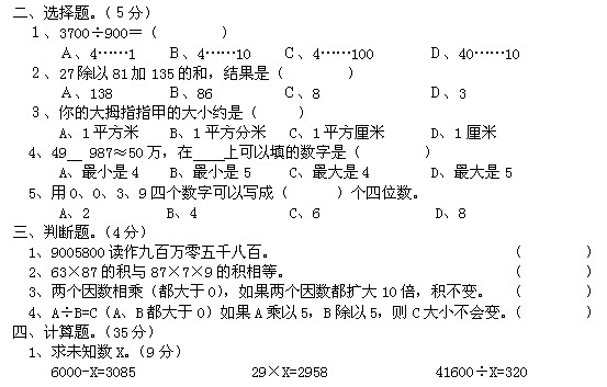 四年级数学上册期末考试试题(一)