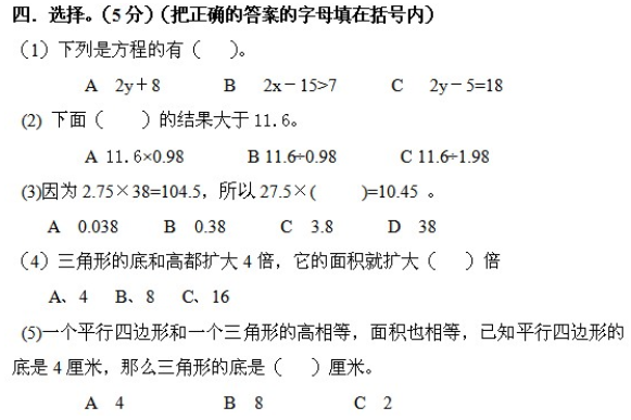 五年级数学上册期末考试试题(四) 石家庄奥数网整理 2011-12-23 11:34:22 期末考试将到,学生们都在努力的备战期末考试。下面是小学五年级数学上册期末考试练习题汇总。希望对你有帮助。 首页 上一页 下一页 尾页