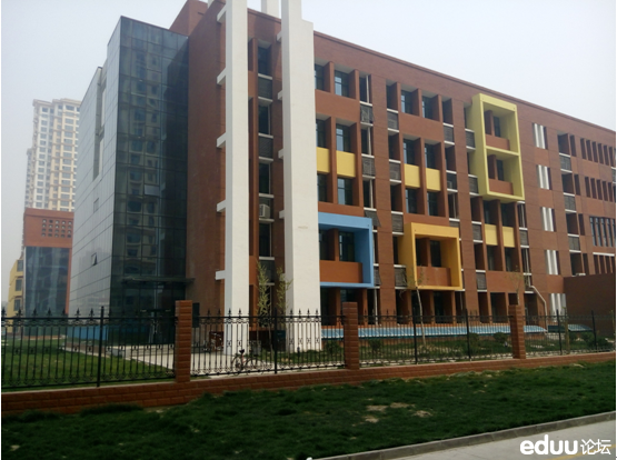 环顾四周,都是正在施工的高楼,学校也是新盖的,校园的环境很不错,而且小编觉得学校的教学楼设计的很有特色。