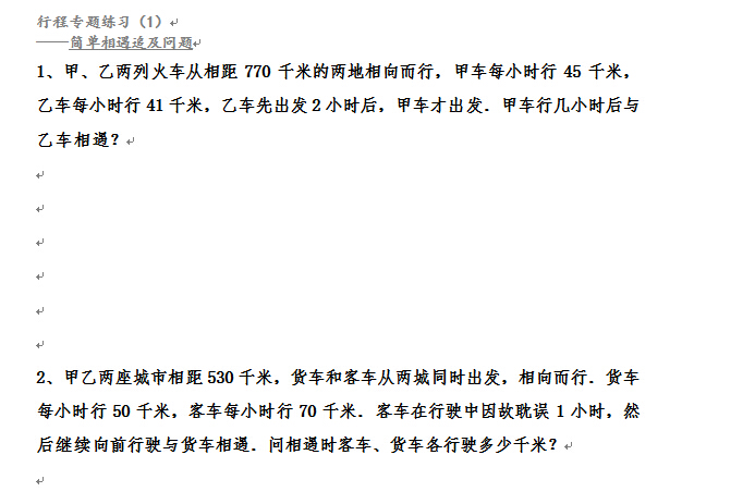 点击下载完整版讲义及练习题>>>简单追及问题练习题