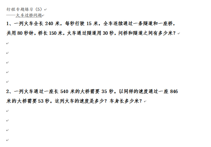 点击下载完整版讲义及练习题>>>火车过桥问题练习题