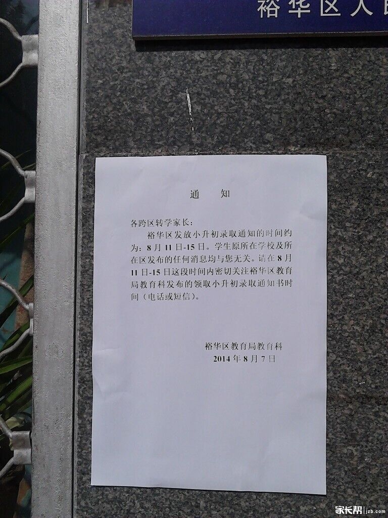 【查看原帖并参与讨论:裕华区领通知书的时间】