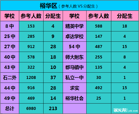 每年的中考招生简章里,大家最关心的数据,一是各高中的招生计划人数,二是部分高中对艺术生、特长生的招生,三就是各高中对各初中的分配生名额。