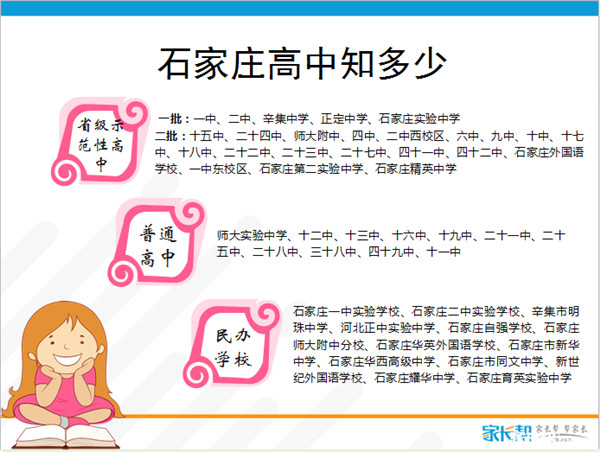 石家庄奥数网:暑假还有一周就要结束了,2015小升初的孩子们马上就就有一名小学生变成一名中学生了。孩子已经转变了,那家长您能跟上节奏吗?和小编一起来做好初中的功课吧。今天小编讲的小升初衔接内容是:石家庄的高中到底有哪些?