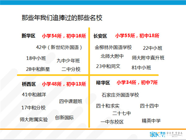 石家庄奥数网:2016年的小升初脚步提前了,有的家长还不知道该如何帮助孩子确定目标学校,有的家长还不知道咱们石家庄市内都有哪些学校是较热门的,哪些学校在小升初时出现的频率比较高的。小编在小升初公益讲座中有做了一张图,我们一起来看看这些年被小升初家长追捧的那些热门学校吧~希望对家长有所帮助!