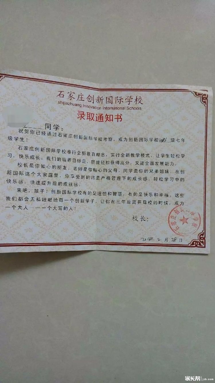 28日上午,我们就接到了孩子被创新录取的通知,当时的心情真是用语言无法表达。2月29日上午我就去创新学校领到了孩子的录取通知书。紧后的一半天,我接到了孩子班主任的电话,推荐孩子去28中,全家又一次综合考虑:上28中离家太远,吃住来回也不方便,再就是作业可能会多一点,这个孩子不愿意。上创新是全封闭式管理,有公共食堂,宿舍8人一屋,半月回家一次,这样孩子也可以锻炼与人相处,再就是校长一再强调不用再给孩子报课外班,最终,我们还是一致选创新!小升初的学校定了,心静了,放松了,啊,暖暖的阳春三月来了……