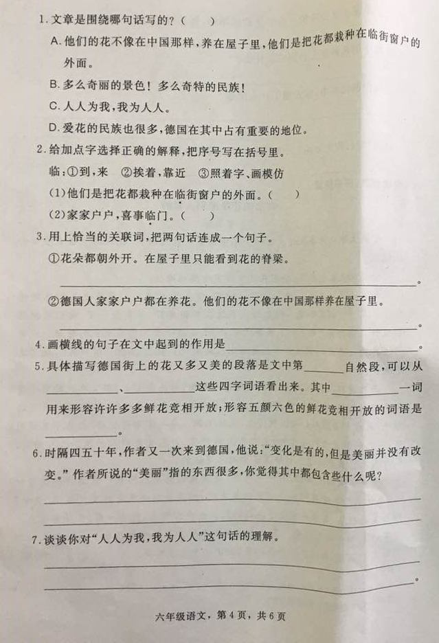 2016-2017学年石家庄裕华区六年级期末测试题语文卷(4)