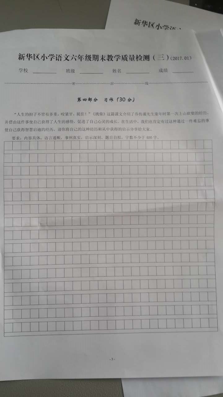 2016-2017学年石家庄新华区六年级期末测试题语文卷(3)