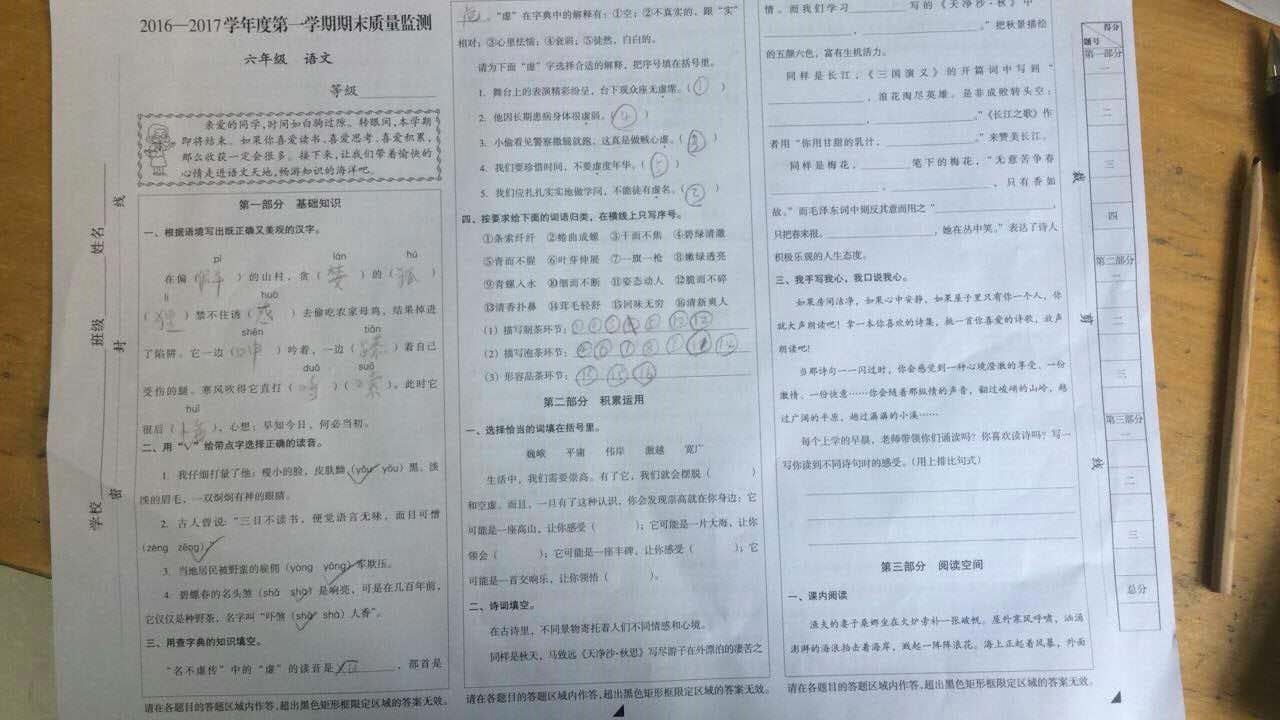 2016-2017学年石家庄长安区六年级期末测试题语文卷