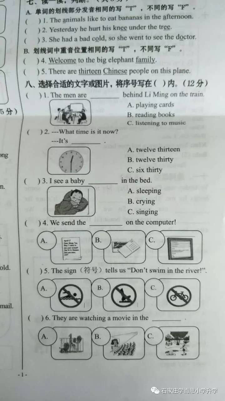 2017年石家庄新华区小学五年级期末考试英语试卷(4)