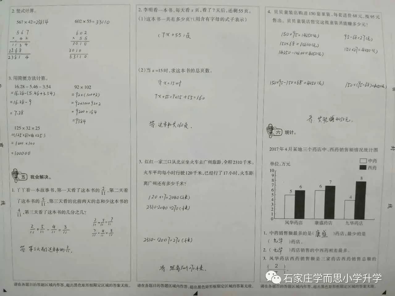 2017年石家庄长安区小学四年级期末考试数学试卷(2)