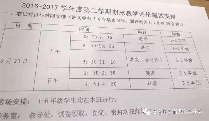 下面是2016-2017学年石家庄各区小学第二学期期末考试时间和科目安排,欢迎大家查看!