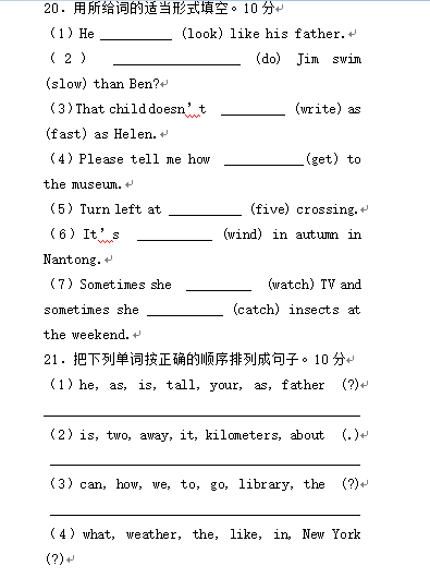 2017石家庄六年级下英语期中模拟测试卷(5)