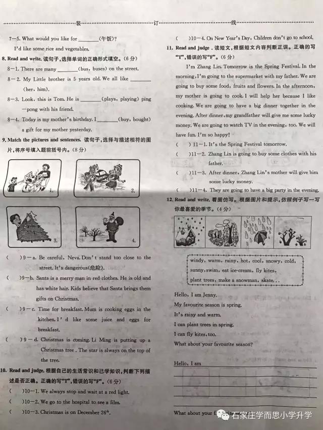 2018石家庄国际庄六年级桥西区英语卷(2)