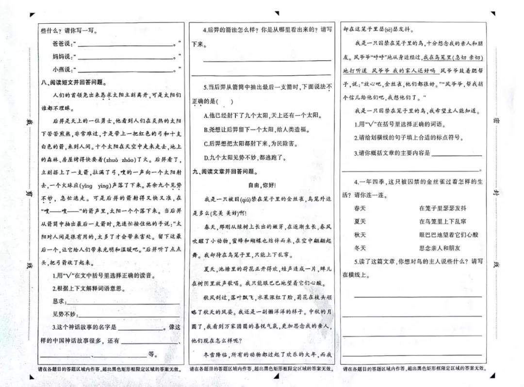 2018石家庄小升初长安区三年级语文期末试卷(2)