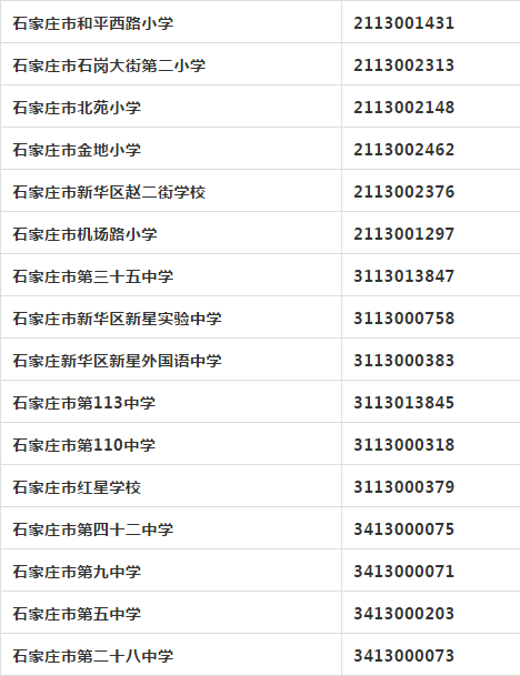 2018石家庄各中小学标识码4