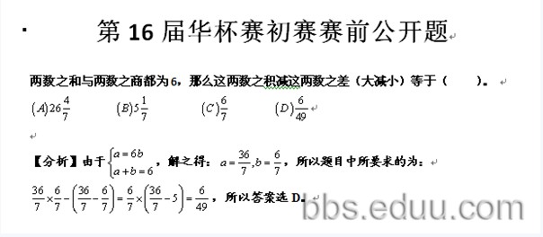 按照惯例,每年在华杯赛初赛考前一周,华杯赛组委会会出一道赛前公开题(一般为1道选择题),这道题会出现在当年的华杯初赛试卷里,这是今年的华杯赛初赛赛前公开题。务必记下。