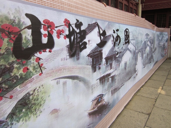 当一卷十米长的水墨长卷“山塘上河图”徐徐展开,画面上勾勒的古山塘的盛世繁华和灿烂文化引来众人的一阵惊叹。这幅图是虎丘中心幼儿园的老师受《清明上河图》启发而创意制作的。4月24日,在山塘街的古戏台前,由虎丘中心幼儿园的小朋友们扮演的“小八仙”护送着“山塘上河图”展示在游客们眼前。美丽古朴的山塘,在苏州这座文明城市中有着别样的风韵和独特魅力,走到熙熙攘攘的人群中,在老街古巷里发现苏州的文明,传播文化的魅力,是虎丘娃娃们作为“城市小主人”的又一文明行动。