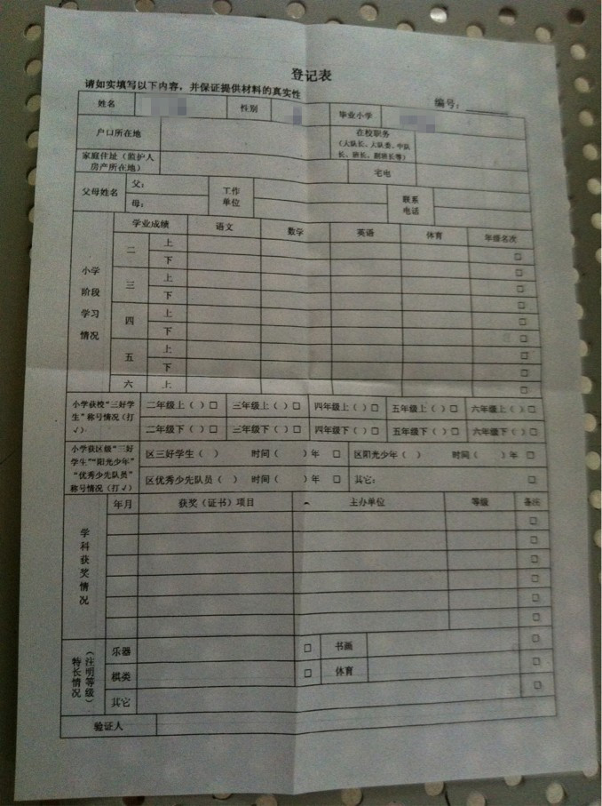第四,需要填写孩子的一些学科竞赛证书,但是登记表上只能填写6个,建议家长在去学校之前,好好的挑选一下,选择6张含金量最高的学科竞赛证书出来(点击查看什么是高含金量的证书),下面填写特长证书的情况也类似,位置不多,家长也需要仔细斟酌。大家到这里,应该就明白我为什么说简历比较重要了,因为在登记表上,能填写比较少,可能一些孩子证书很多,登记表上根本没办法填写,这个时候,简历的作用就体现出来了。你给学校老师留一份孩子简历,这样能把孩子全方位的展示给学校。(点击查看如何制作小升初择校简历)