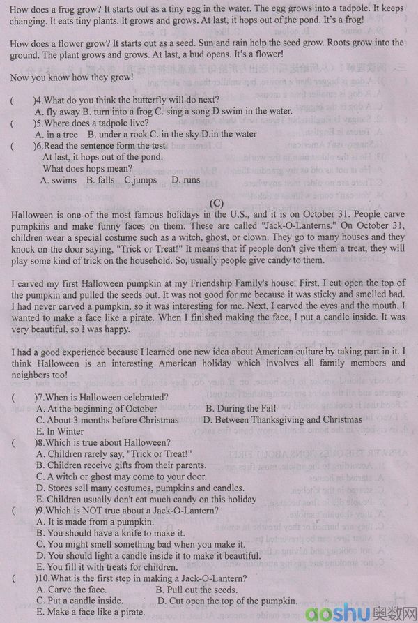 2010年苏州外国语小学生综合能力测试-英语试题(3)