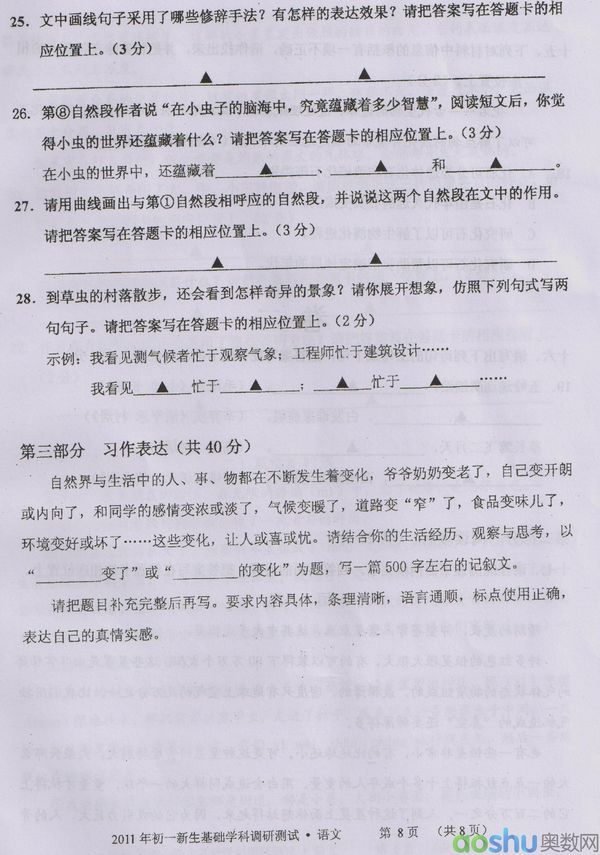 2011年苏州市初一新生基础学科调研测试语文(8) 苏州奥数网 2013-05-08 17:25:27 编辑推荐 2011年苏州市初一新生基础学科调研测试英语 2011年苏州市初一新生基础学科调研测试数学 首页 上一页 下一页 尾页