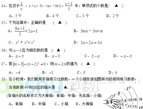 苏州相城区2010~2011第一学期初一数学期中试卷(2)