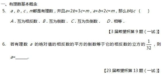 初一希望杯有理数模块试题