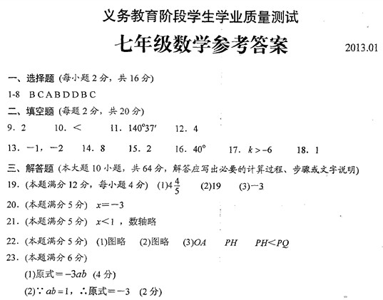 2012—2013苏州高新区初一数学上册期末试卷(2)
